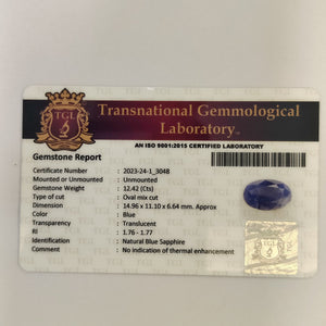 Blue Sapphire | BS 39 | 12.42 Carat