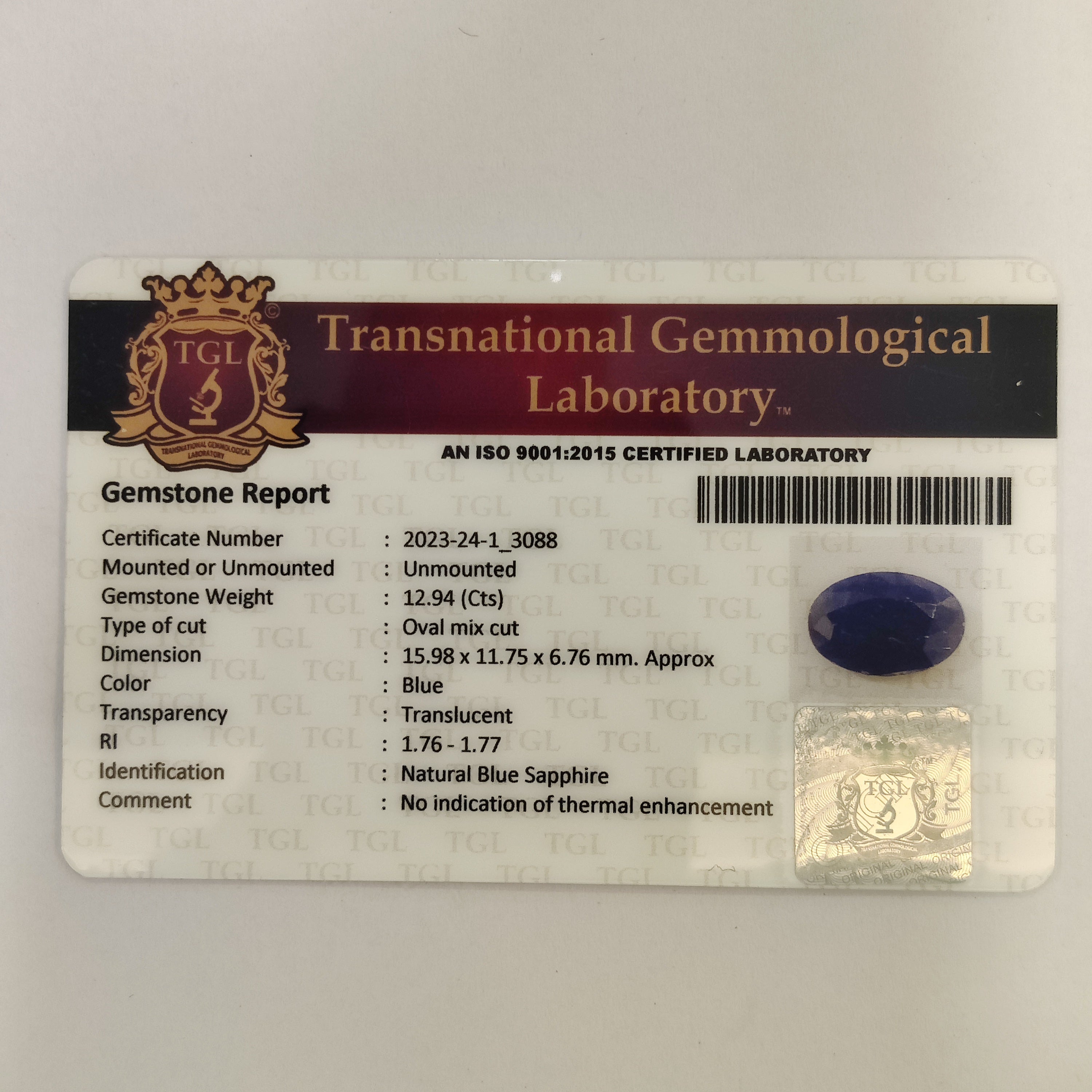 Identification: Blue Sapphire