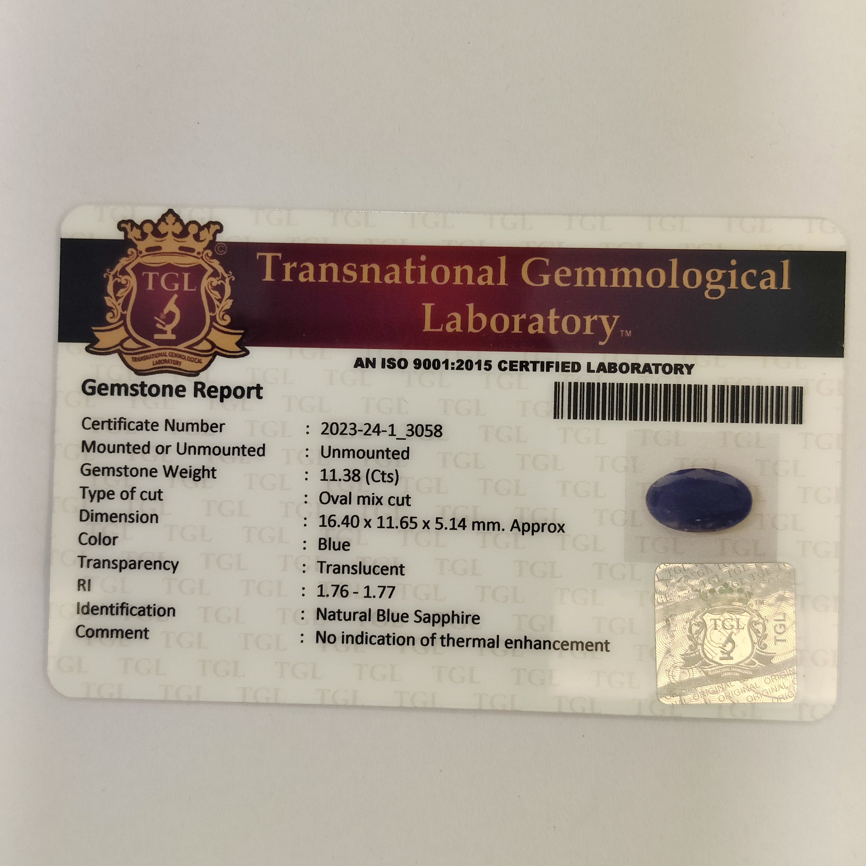 Identification: Blue Sapphire