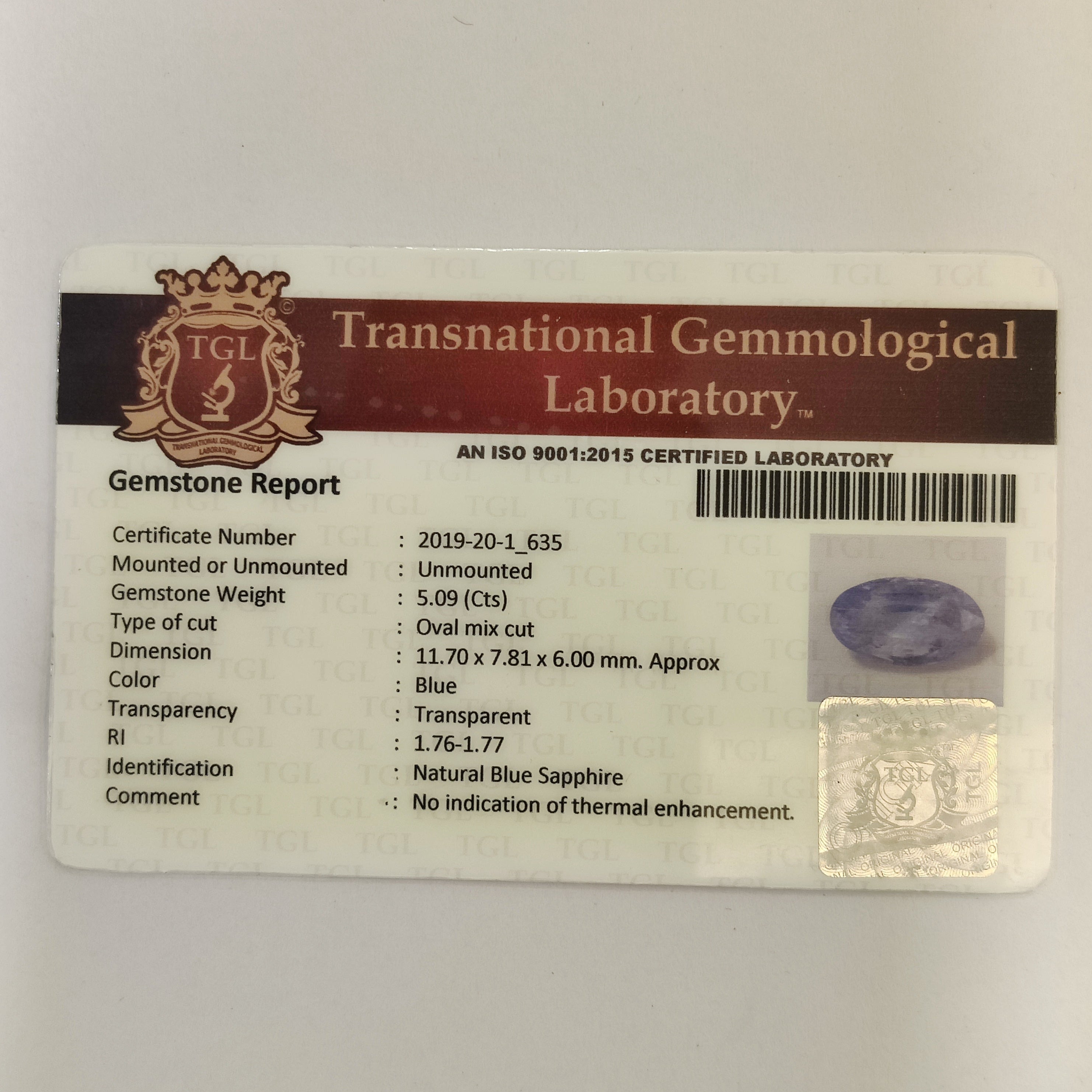 Identification: Blue Sapphire