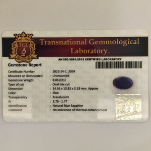 Blue Sapphire | BS 70 | 8.06 Carat