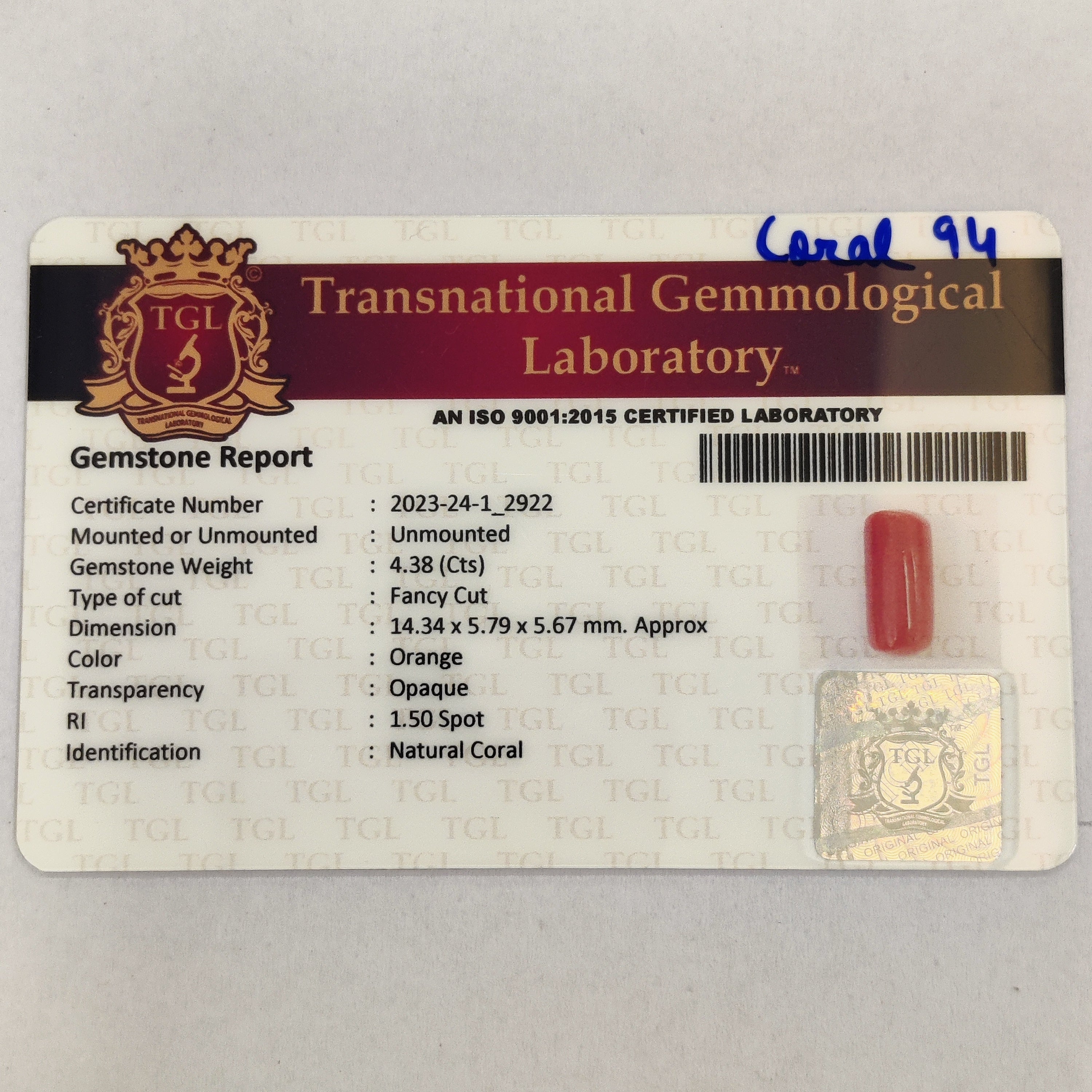 Coral | CORAL 94 | 4.38 Carat