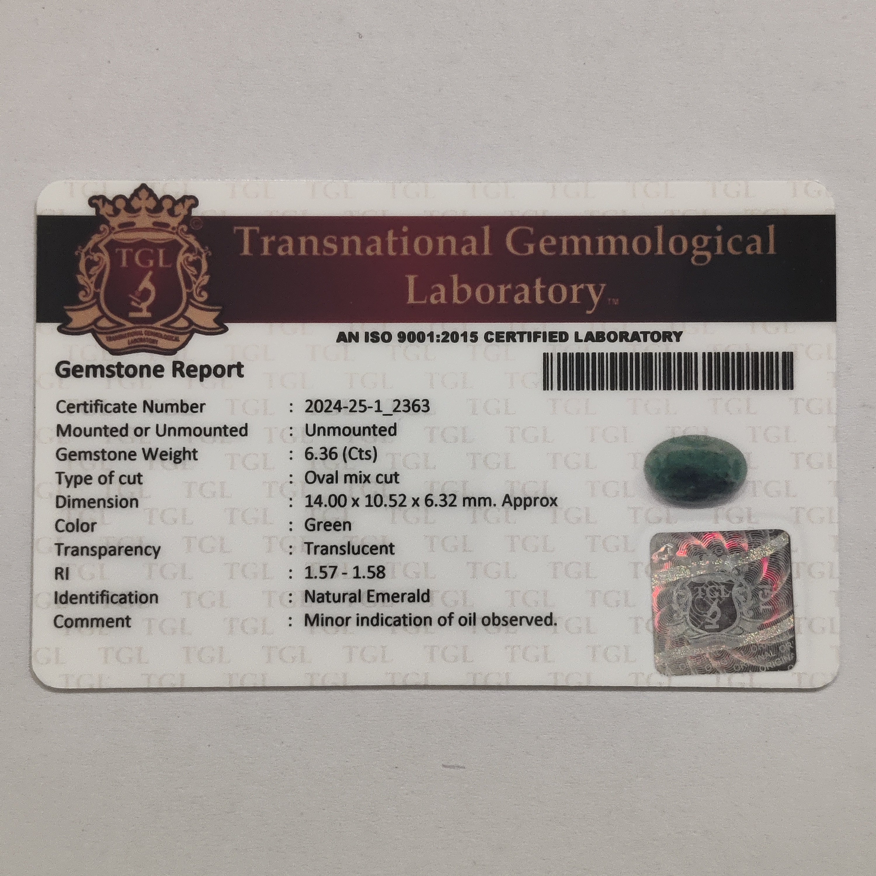 Emerald | EM 545 | 6.36 Carat