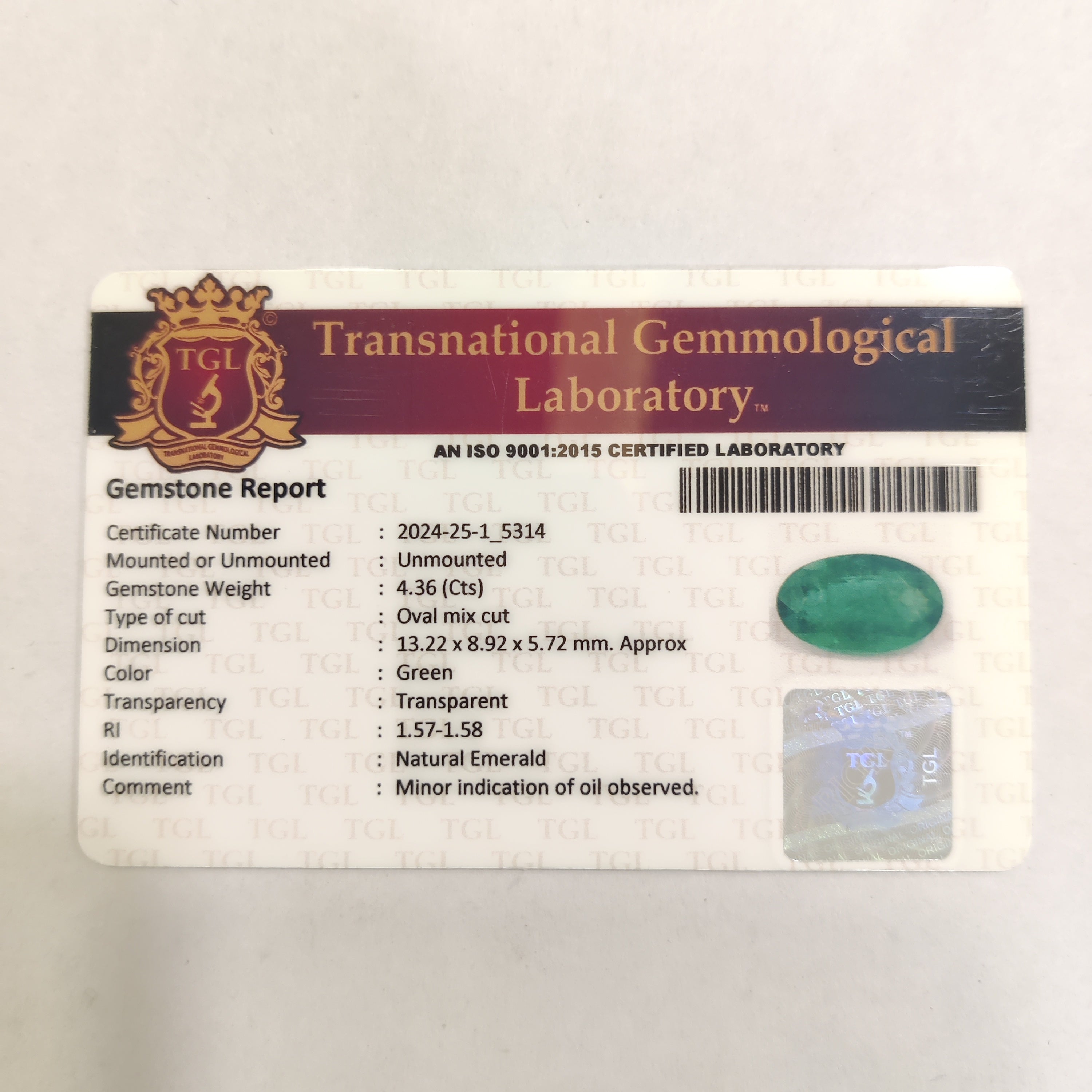 Emerald | EM 651 | 4.36 Carat