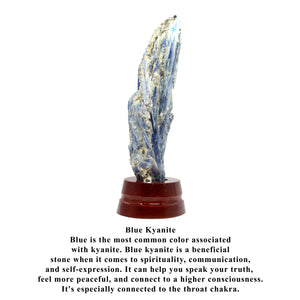 Blue is the most common color associated with kyanite. Blue kyanite is a beneficial stone when it comes to spirituality, communication, and self-expression. It can help you speak your truth, feel more peaceful, and connect to a higher consciousness. It's especially connected to the throat chakra.