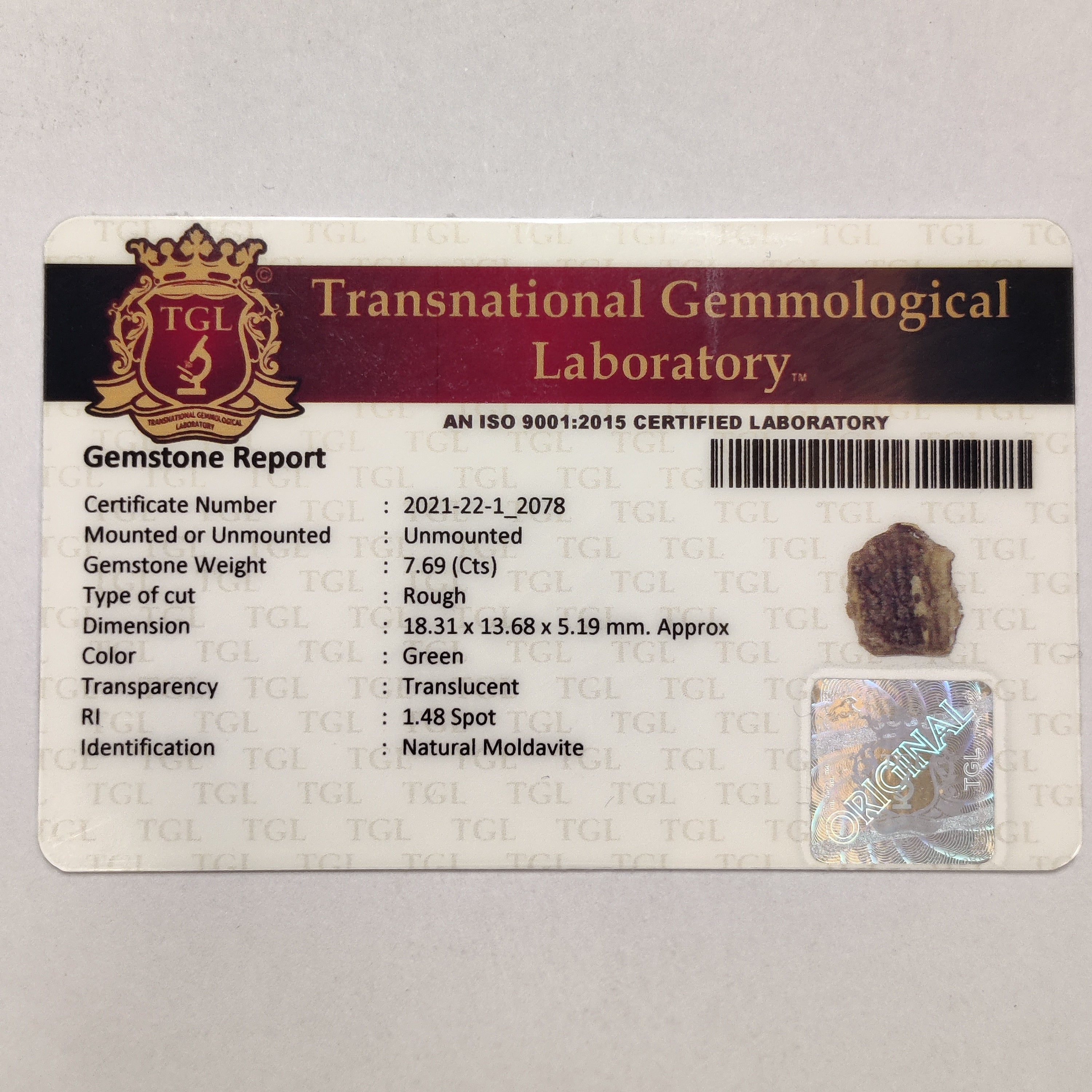Moldavite | MOL 12 | 7.69 Carat