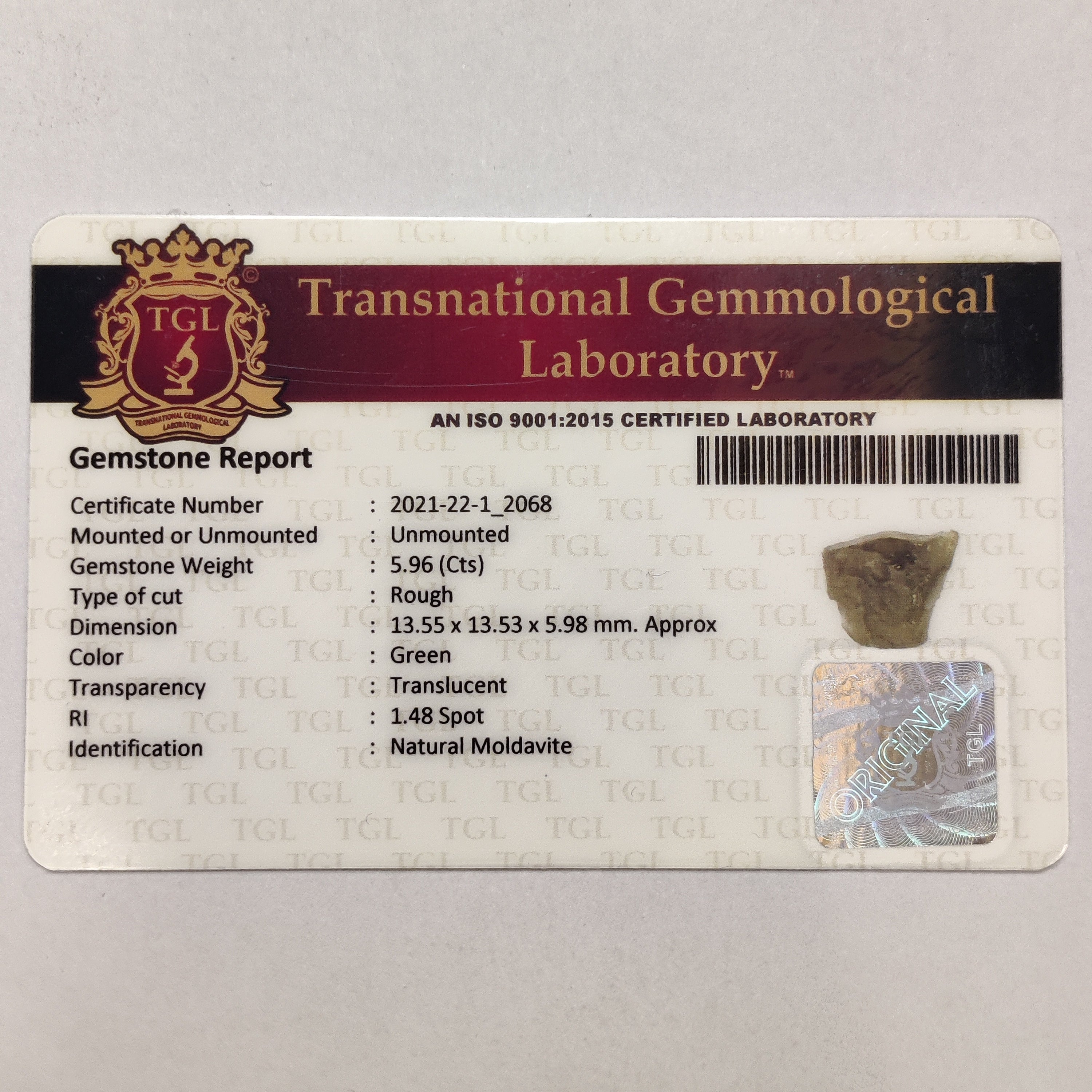 Moldavite | MOL 2 | 5.96 Carat