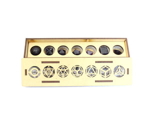 - Nestled in their own compartment in a special wooden case with an identification label for each shape. 5 Pcs Set includes the Tetrahedron, Hexahedron, Icosahedron, Octahedron and Dodecahedron
