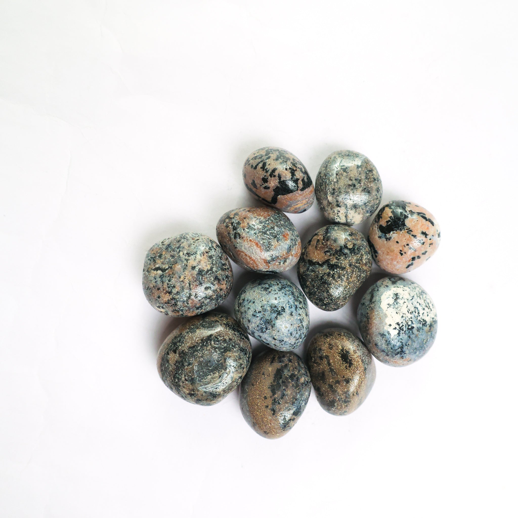 - Natural Dotted Jasper Tumbles Stone: Weight: 100 Grams, 250 Grams, 500 Grams, 1kg.