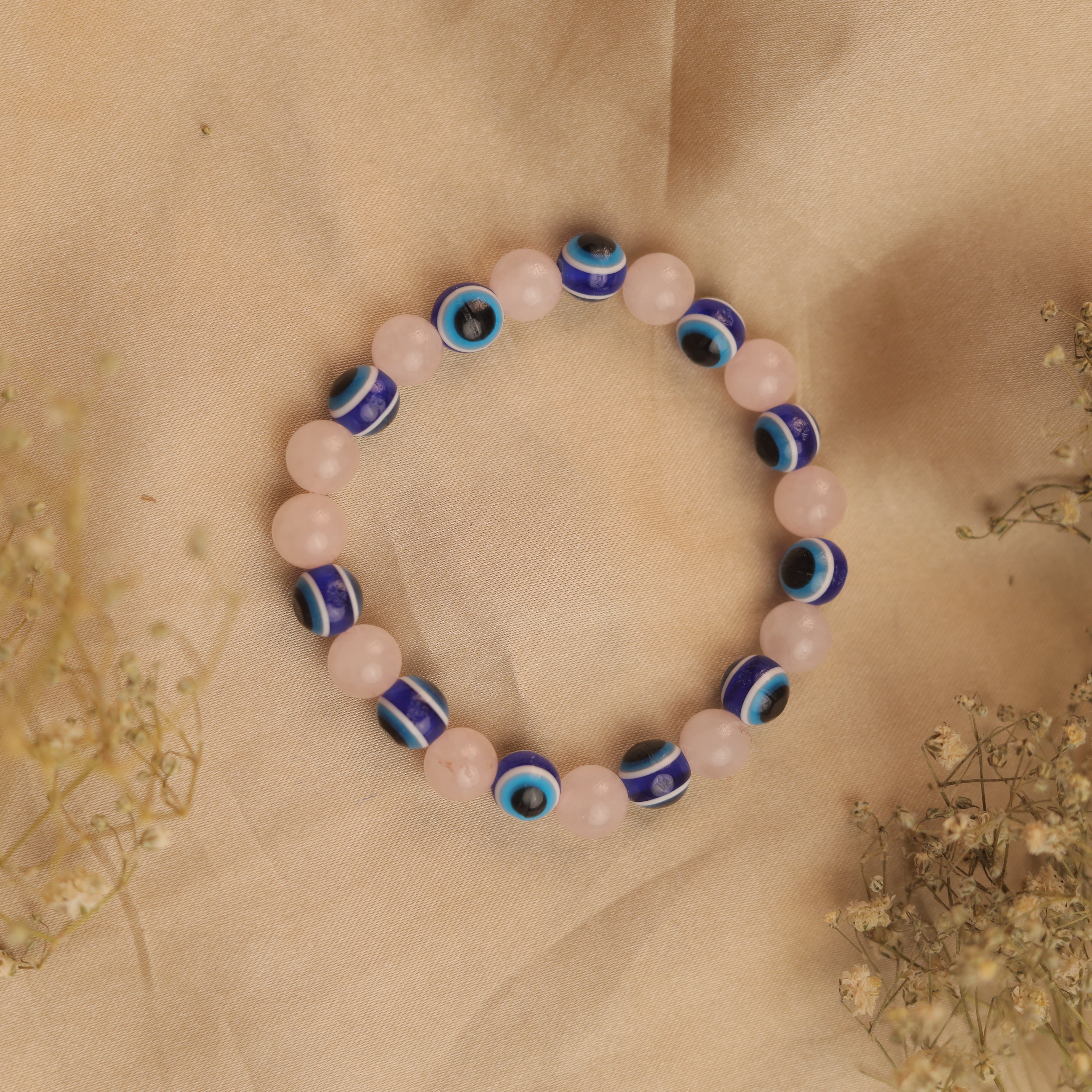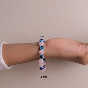 NATURAL ROSE QUARTZ + EVIL EYE BRACELET