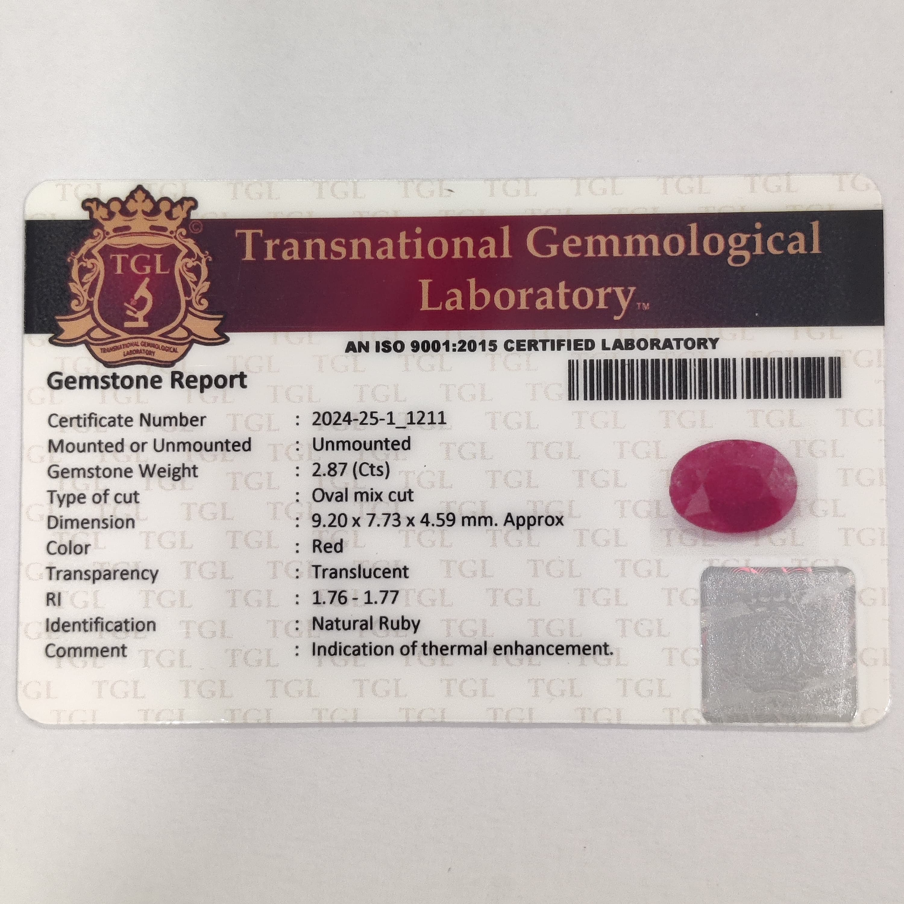 Ruby | RUB 164 | 2.87 Carat