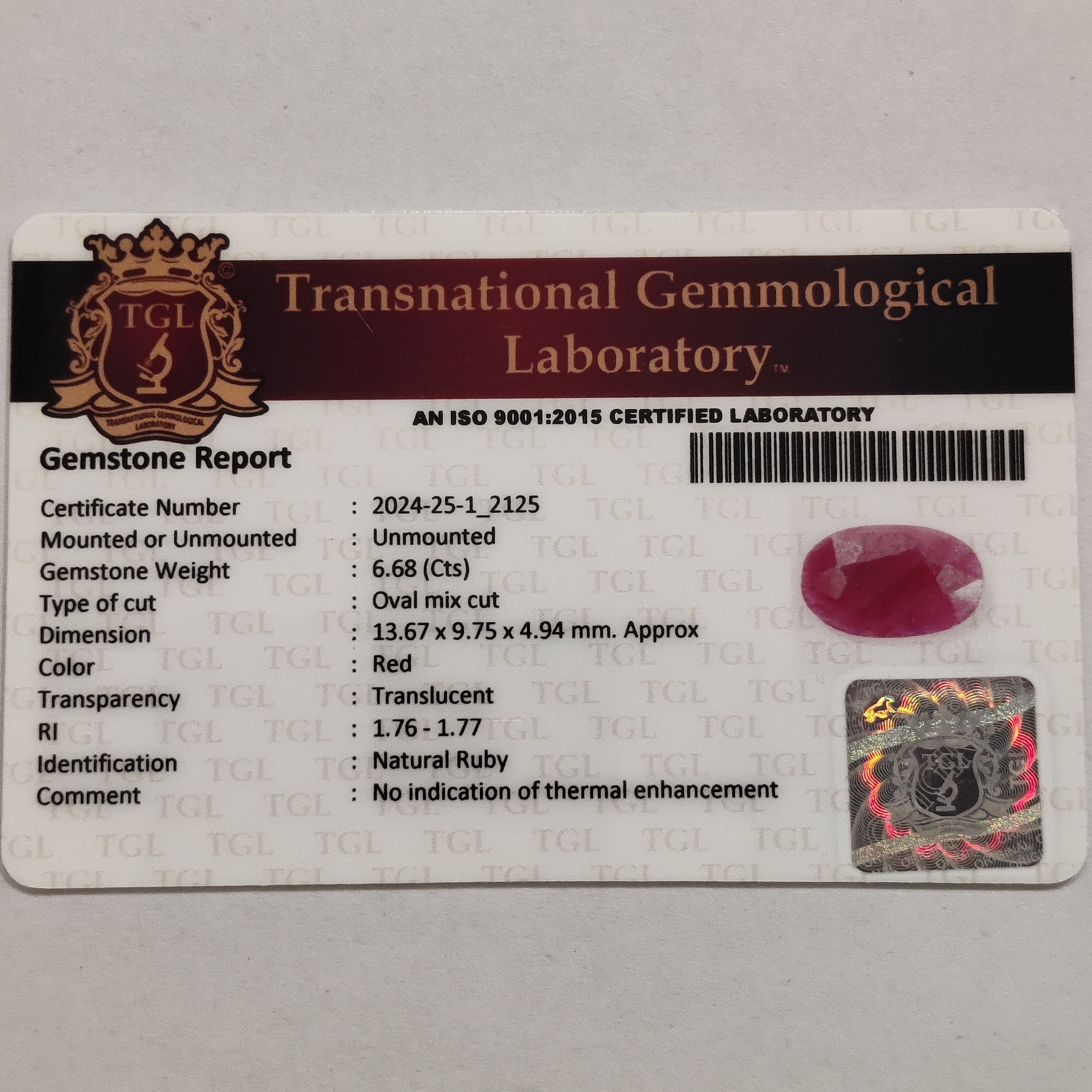 Ruby | RUB 184 | 6.68 Carat