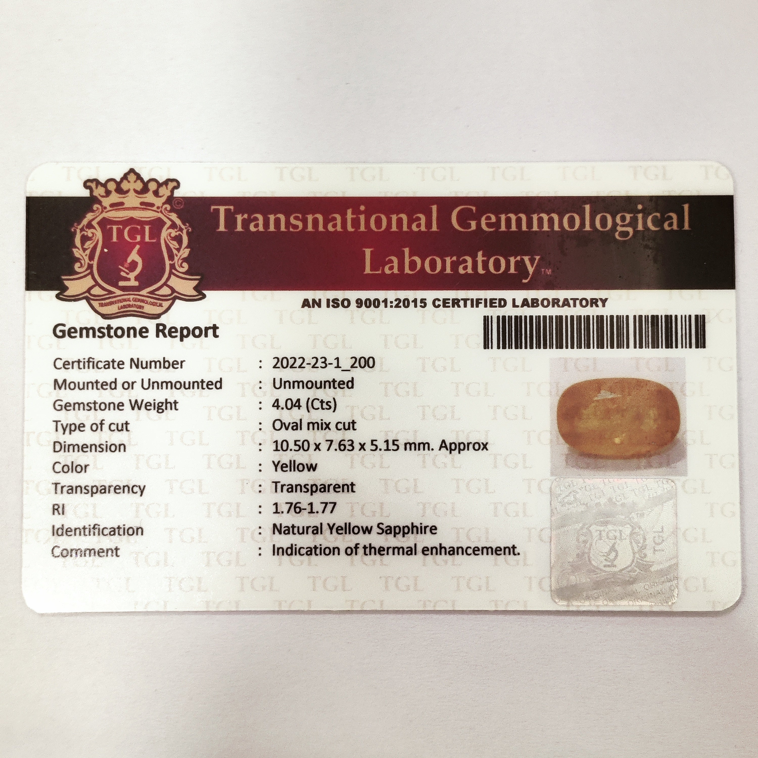 Identification: Yellow Sapphire