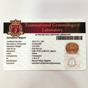 Yellow Sapphire | YS 103 | 5.61 Carat