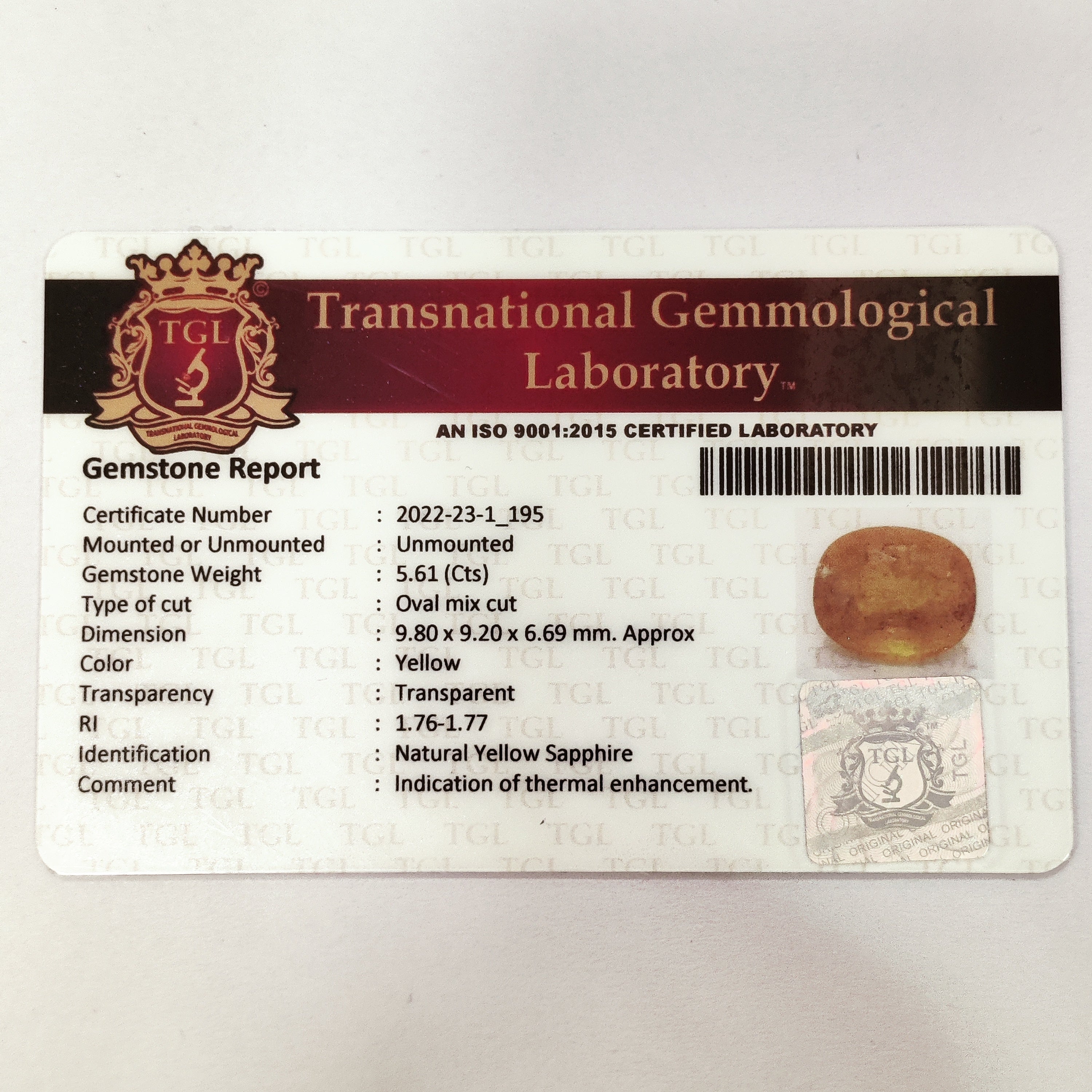 Identification: Yellow Sapphire