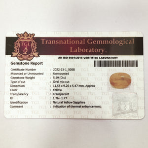 Yellow Sapphire | YS 138 | 5.59 Carat