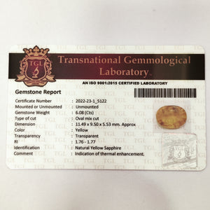 Yellow Sapphire | YS 161 | 6.08 Carat