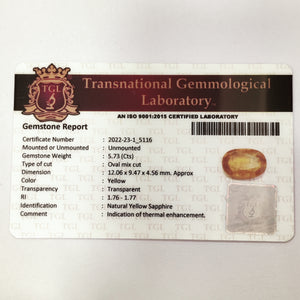 Yellow Sapphire | YS 164 | 5.73 Carat