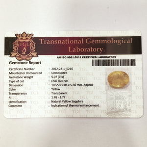 Yellow Sapphire | YS 195 | 5.07 Carat