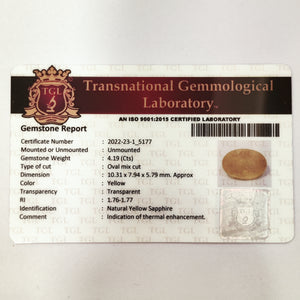 Yellow Sapphire | YS 219 | 4.19 Carat