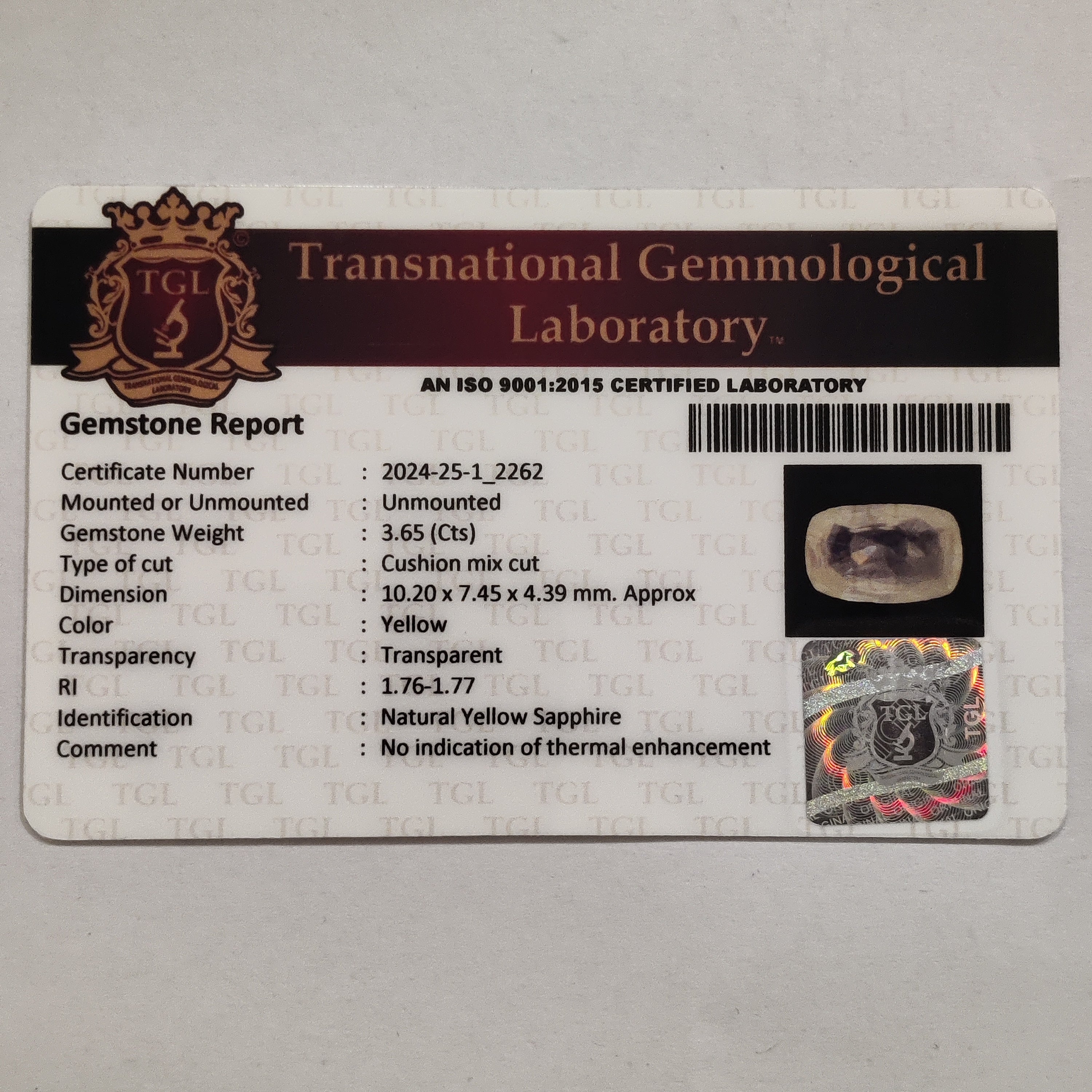 Identification: Yellow Sapphire