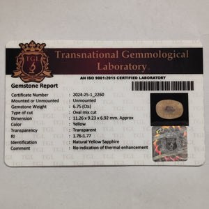 Yellow Sapphire | YS 262 | 6.75 Carat