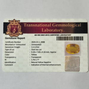 Yellow Sapphire | YS 273 | 3.11 Carat