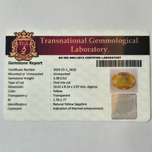 Yellow Sapphire | YS 275 | 3.38 Carat