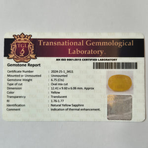 Yellow Sapphire | YS 276 | 6.75 Carat