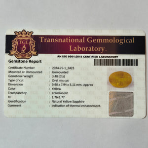 Yellow Sapphire | YS 288 | 3.48 Carat
