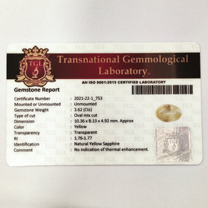 Yellow Sapphire | YS 46 | 3.62 Carat