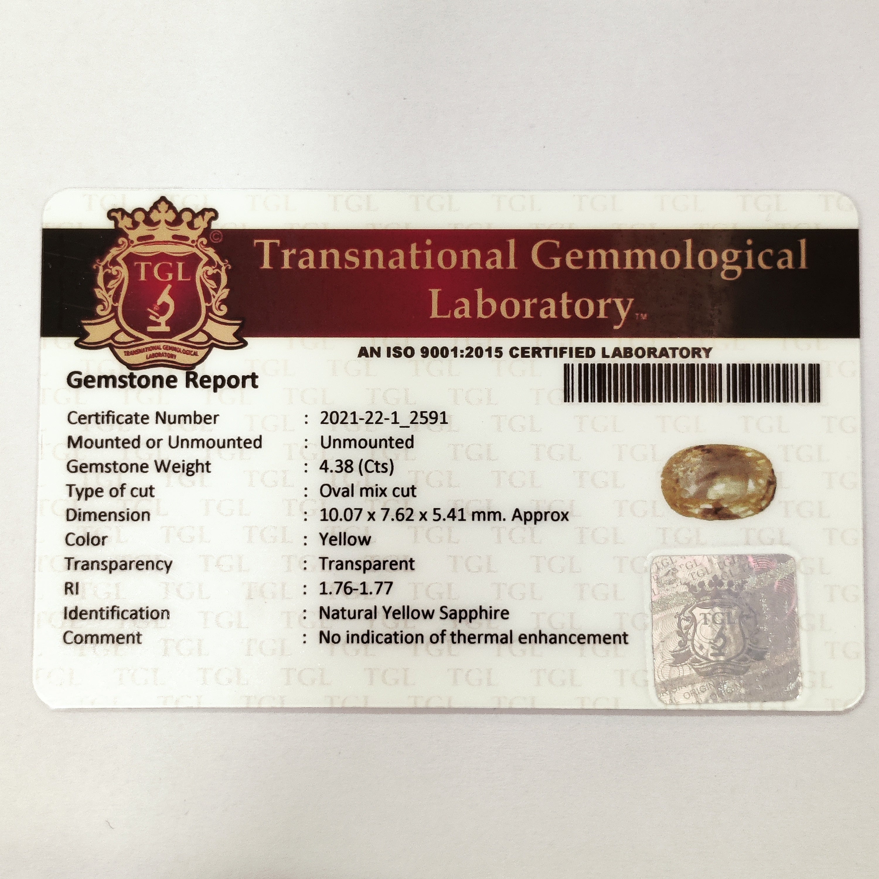 Identification: Yellow Sapphire